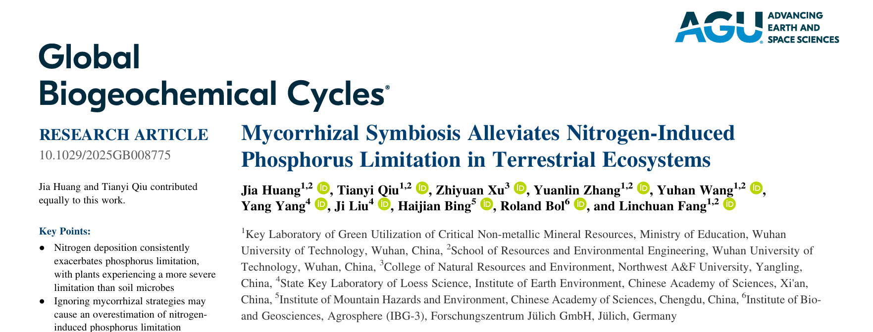 论文题目:Mycorrhizal symbiosis alleviates nitrogen-induced phosphorus limitation in terrestrial ecosystems