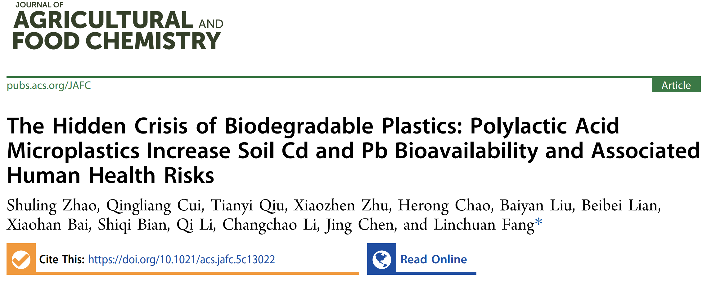 论文题目:The hidden crisis of biodegradable plastics: Polylactic acid microplastics increase soil Cd and Pb bioavailability and associated human health risks