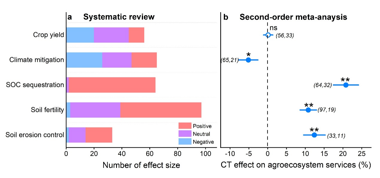 论文题目:Global potential and trade-offs of conservation tillage for crop productivity and ecosystem services